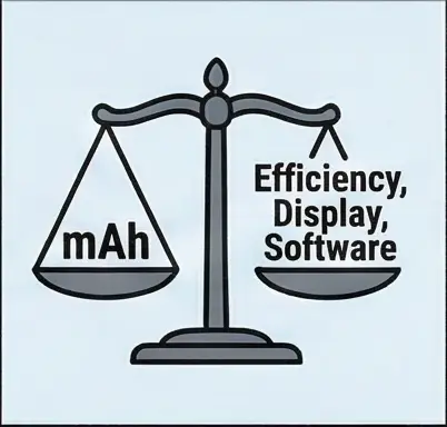 ✔ 배터리 용량만 보지 말고 프로세서 효율과 소프트웨어 최적화도 확인하기