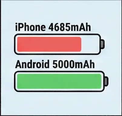 예를 들어 4,685mAh 아이폰이 5,000mAh 안드로이드보다 실제 사용 시간이 더 길 수도 있어요.