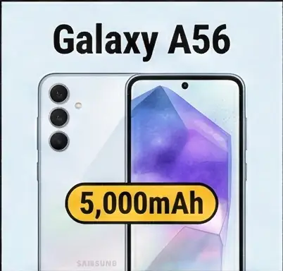 갤럭시 A56은 중급형 라인업이지만 5,000mAh 대용량 배터리로 플래그십 못지않은 사용 시간을 제공합니다.