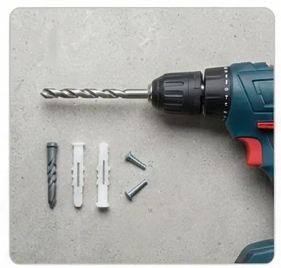🔨 필요 도구: 전동 드릴, 콘크리트 드릴 비트, 앙카볼트, 수평계