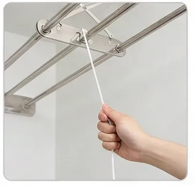 수동 천장형은 베란다 건조대 중 가장 보편적인 타입이에요. 줄을 당겨 봉을 내리고 올리는 방식으로 가격도 부담 없는 편입니다.