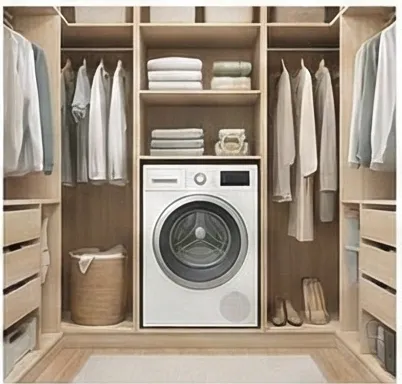 다용도실 외에도 히트펌프 방식의 전기 건조기라면 주방, 거실, 드레스룸 등 실내 어디에도 설치가 가능합니다. 물통 방식을 선택하면 배수구가 없어도 되기 때문에 훨씬 자유로워요.