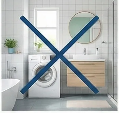 - 창문 주변: 창문 높이가 1,050mm 이하이고, 세탁실 너비가 1,000mm 이상이어야 창문 근처 설치가 가능합니다.