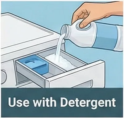 흰옷·수건류의 심한 냄새 제거에 특히 효과적입니다. 색깔 옷에는 탈색 우려가 있으므로 흰옷, 속옷, 흰 수건에만 사용하는 것이 안전합니다.