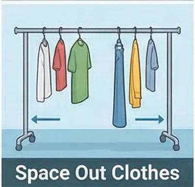 - 빨래 간격을 최대한 넓게 하여 건조대에 널기