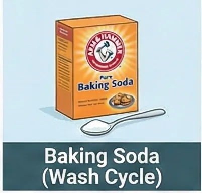 베이킹소다와 식초는 쉰냄새 제거의 기본 조합입니다. 베이킹소다의 약알칼리 성분이 세균과 곰팡이를 중화시키고, 식초의 산성 성분이 남은 세제 찌꺼기와 세균을 추가로 제거합니다.