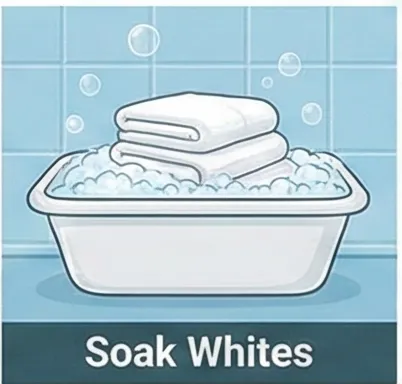 ✔ 흰옷·수건 냄새 제거 → 과탄산소다 40~60°C 온수에 녹여 사용