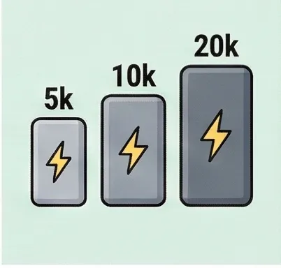 10,000mAh: 가장 인기, 스마트폰 2~3회 충전 (일상용)