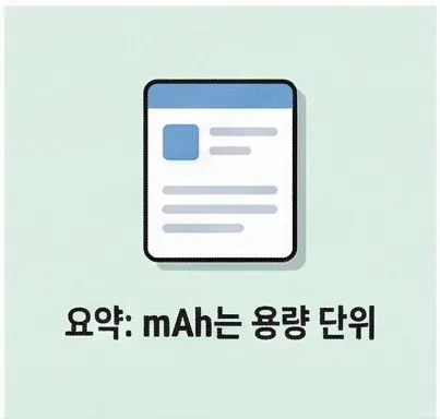 mAh(밀리암페어시)는 배터리가 1시간 동안 사용할 수 있는 전류량을 나타내는 단위예요. 숫자가 클수록 배터리 용량이 크고, 더 오래 사용할 수 있답니다.