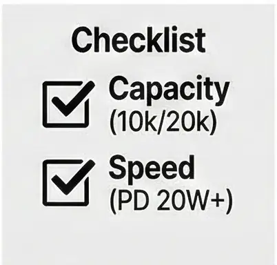 스마트한 보조배터리 선택을 위한 체크리스트입니다.