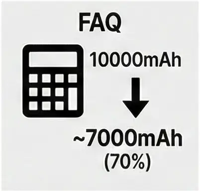 예를 들어 10,000mAh 제품은 실제로 약 7,000mAh 정도를 사용할 수 있어요. 변환 과정에서 에너지 손실이 발생하기 때문이죠.