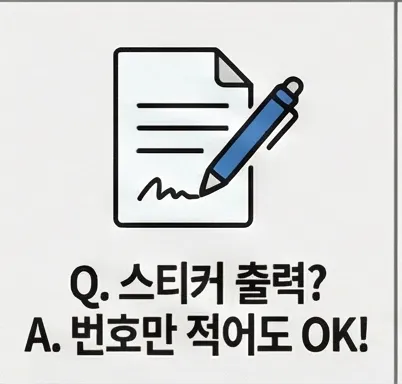 아니요! 인터넷 신청 후 문자로 받은 접수번호(신고필증 번호)를 빈 종이에 크게 적어 부착해도 돼요. 프린터 없어도 OK! ✅