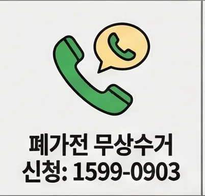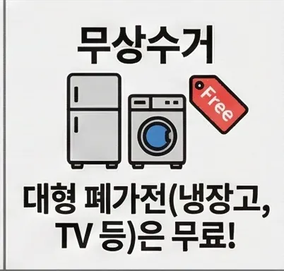 ❗ 냉장고, 세탁기, 에어컨, TV(32인치 이상) 등 대형 폐가전은 무상수거(무료)가 가능해요. 📞 1599-0903으로 신청하세요.