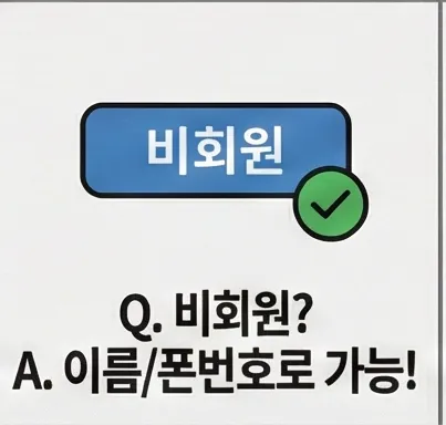 위 주소로 접속 후 회원 또는 비회원 로그인이 모두 가능해요. 비회원도 이름과 전화번호만 입력하면 신청할 수 있어요.