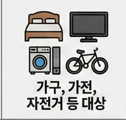 - 🛋️ 가구류: 침대, 매트리스, 소파, 장롱, 책상, 의자, 식탁