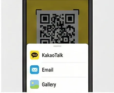 QR코드 화면 하단의 '보내기' 버튼을 누르면 갤러리에 저장하거나 다양한 방법으로 공유할 수 있습니다.