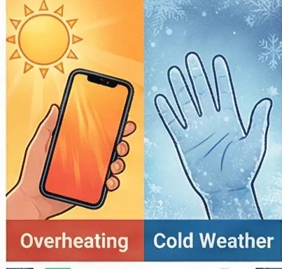 무더운 여름철에는 핸드폰 내부 온도가 올라가 '열화현상'이 생길 수 있어요. 반대로 추운 겨울에는 리튬이온 배터리의 이동 속도가 둔해져서 배터리 성능이 급격히 떨어집니다.