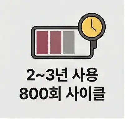 ✔ 배터리 사이클 800회 또는 사용 2~3년이면 교체 시기